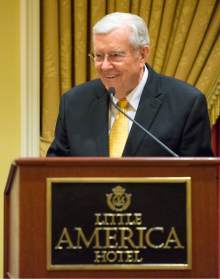 "You are losing your wonderful bishop," he told the crowd gathered in a Little America ballroom, "and I am losing one of my very dear friends."