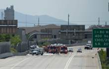 The tanker, which came to rest across several lanes, looked like it had begun to break along a seam. The stretch of freeway was reopened by 3:25 p.m.