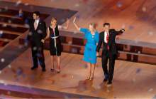 With only seconds to spare, the generator sputtered to life just as Huntsman started his long walk across the grassy park to the stage, holding hands with wife Mary Kaye and daughter Gracie and flanked by the rest of his kids.