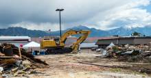 Taylorsville • Demolition got underway Tuesday to clear the way for a planned new retail development on 20 acres just south of 5400 South and west of Redwood Road an area that has become blighted with vacant and deteriorating buildings.