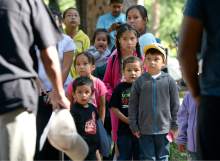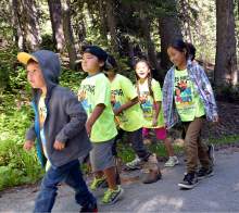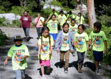 Native American children go on a nature walk at the Native American Church of North America's Youth Conference, part of its national conference at Redman Campground in Little Cottonwood Canyon Thursday June 18. The conference is expected to have 400 Native American children and their families attend the conference, which includes members from around the country and Canada.