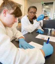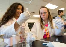 Emma Ashton, an eighth-grader from Kaysville, noted she often sees test tubes and beakers in lab kits for boys. Versions for girls, she said, focus on lip gloss.