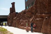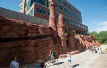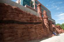 The "Echo Canyon" design on Parleys Trail just west of the tunnel that connects to Sugar House Park is modeled after "The Witches" spires and other landmarks along the Mormon Trail. Some of its faux redrock peaks tower 30 or more feet above the popular biking and walking path.