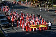 On their 1-mile route to Pioneer Park, marchers carried large, colorful signs that read "Black lives matter" and "Not one more." They chanted "God did not make death" and responded, "Nor does God delight in the death of the living."
