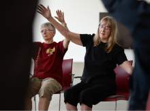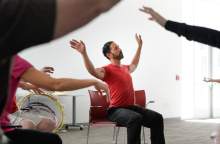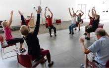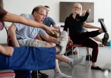 The seven men and women with Parkinson's disease sit tall in their chairs as a recording of birdsong fills the dance studio.