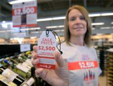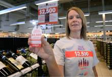 Val Dunaway, Regional Manager for 22 Utah State Liquor Stores shows employee shirts, posters and tags hanging from liquor bottles reminding patrons of the legal and financial costs of supplying alcohol to those who are underage.