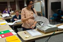 Each vote-by-mail ballot comes in a special envelope. When a resident completes it, he or she seals it, signs a flap and then also seals that down. To confirm the vote, Swensen's team at the county clerk's office opens just the signature portion and compares it to the resident's signature on file. If the two don't match, the voter is sent an exception letter to confirm if they actually voted.