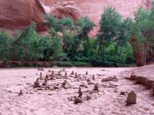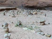 In any case, public land managers say, the cairns must come down. Zion, Arches, Canyonlands and the BLM all make cairn removal a matter of routine. Recently, Crandall said, the BLM sent three rangers and an archaeologist to remove a large cairn in Mule Canyon. The cairn was so large, she said, that a sizable bat was found nesting inside.
