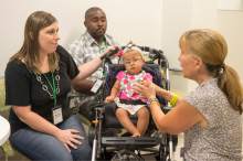 For most children at the event, their conditions prevent them from talking, but many communicate in other ways. All need help walking and older patients use wheelchairs.