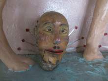 The man loved baseball, sponsoring and managing a local Delta team and building a mechanical baseball team, complete with fans in bleachers in the background. The heads of two of those wooden baseball puppets can be seen inside the hall today.