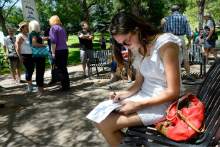 With a signed letter in hand, Engle joined with roughly 100 current and former Mormons including Ordain Women co-founder Kate Kelly at a mass-resignation event a block from the church's downtown headquarters.