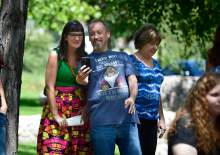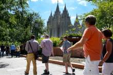 Because of noise from traffic, the group continued walking around Temple Square, briefly falling into disarray before regrouping at City Creek Park to hear remarks from speakers, including Kelly and former LDS bishop Earl Erskine, host of the online video series "Ex Mormon Files."