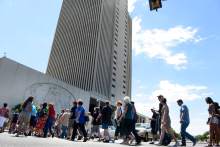 After gathering at City Creek Park, participants crossed North Temple and State Street to deliver their resignation letters to the LDS Church Office Building.
