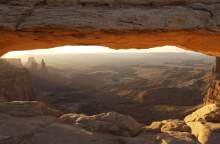 Mesa Arch Trail • Listing this as a trail is almost cheating. The loops is only half a mile and the elevation change isn't worth mentioning. But you can't really say you visited Island in the Sky without seeing the wide Mesa Arch and looking at the canyon floors below.