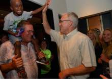 Garrott, who conceded early election night, slapped both of the victors on the way out.