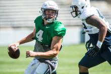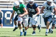 Without Koroma on Saturday, coaches tried several other players at center, including junior Kyle Johnson, who has seemingly been entrenched at left guard. And sophomore Lui Lapuaho, who has mostly been a tackle, saw time at guard.