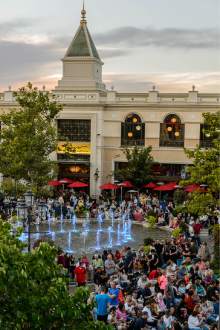 Community 'living room' • Beyond money, Millheim and others say, Station Park has emerged as a social-gathering place. The complex boasts a family-oriented theme and is lined with trees and grassy areas. Fountain Square, at the complex's heart, features an event lawn, play areas and a programmed show fountain. Station Park holds public concerts and get-togethers each week.