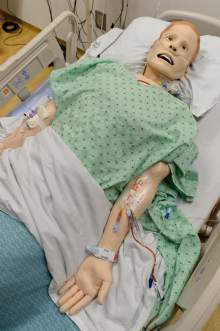 A plastic baby is covered in jelly as it is readied for a birth simulation at Intermountain Healthcare's largest and most advanced medical simulation center at LDS Hospital in Salt Lake City. The center is equipped with advanced simulation technology that allows staff the opportunity to develop and practice physical skills, critical thinking, decision-making, collaboration, and communication in a safe, realistic environment.
