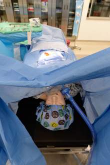 Primary Children's Hospital simulation coordinator Brenna Thomas uses ultrasound to det