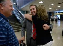 He came with his wife and two children, along with a white "Welcome Home" poster for Monica, who was returning from an 18-month Mormon mission in Peru.