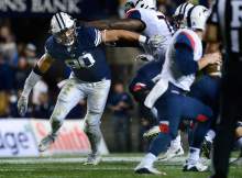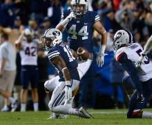 Kai Nacua and Bronson Kaufusi combined to make the play of the game for the Cougars a couple plays later, however. A blitzing Nacua blasted UConn quarterback Bryant Shirrefs as he was releasing a third-down pass, and Kaufusi picked it off.