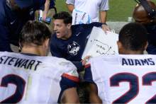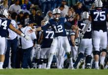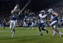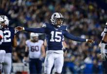 A huge unsportsmanlike conduct call on UConn's Andrew Adams then prolonged a BYU drive, and Mangum's 6-yard touchdown pass to Mathews sealed it at 27-13 with 7:26 remaining.