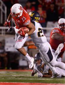 He withstood backfield contact and made Cal's Damariay Drew and Darius White whiff before diving into the northeast corner of the end zone for Utah's first score. Later he pulled the same trick when he was seemingly stopped for a loss at the Cal 4, reversing field after contact to give the Utes a 24-10 lead with less than two minutes remaining in the half. He spun out of tackles, he bulldozed defensive backs and he kept his feet when his momentum made that improbable.
