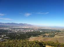 Mount Van Cott offers great views of the campus, the city and the valley in relatively short order. From the trailhead, go through the gate and follow the road north. In a few hundred yards, you'll start to see a lot of trails offering some way to reach Mount Van Cott. The most direct route is take the trail going northeast with a steep ascent up the mountain. There's one short switchback and then the trail ascends again. At about sixth-tenths of a mile, the trail levels and travels southeast around the middle of the mountain. The trail turns northeast and begins ascending again. At about the 1-mile mark, you turn north and will follow the trail to the rocky ledge that is the top of Mounta Van Cott. DestinationPeak