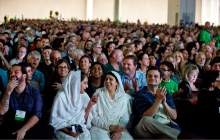 "This is our time the world is coming closer in the global village," Mujahid said. "Let's bring hearts and minds together. That is the interfaith movement. Are you with me?" The crowd filling the exhibition hall roared back their affirmation.