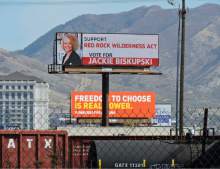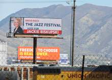 It now has three signs in its digital billboard rotation along I-15, supporting the challenger on addressing homelessness, restoring the city jazz festival and backing wilderness legislation in Congress.