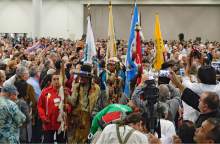 Members of the Ute Tribe lead the procession for the opening plenary at the 2015 Parliame