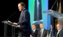 Utah Gov. Gary Herbert speaks during the opening plenary at the 2015 Parliament of the World's Religions held inside the Salt Palace Convention Center on Thursday, Oct. 15, 2015, in Salt Lake City.