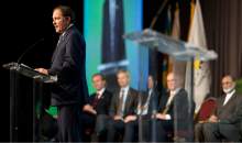 Utah Gov. Gary Herbert speaks during the opening plenary at the 2015 Parliament of the Wo