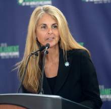 Sande Hart, Coordinator for North America, United Religions Initiative, speaks at press conference Tuesday September 9 for Parliament of the World Religions, announcing that the global interfaith gathering has chosen Salt Lake City for its October 2015 meeting.