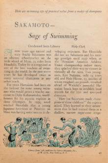 "Sakamoto was by nature quiet, humble, enigmatic and profoundly distant from others," says Checkoway, adding that his swimmers respected him and listened to him but didn't really know him. Neither did his family. "I was amazed that, in the course of researching this book, so many of the club members were learning the details of Sakamoto's life as I was."