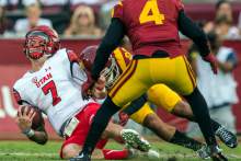 Smith finished the game as Wilson's No. 4 target. That's a problem, considering he's a USC linebacker. Two of Smith's three interceptions led to touchdowns, via a 4-yard offensive drive and his own 54-yard return to the end zone.