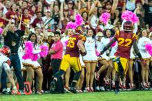 Said USC quarterback Cody Kessler, whose own line was untarnished: "He's being modest, but those picks, those won us the game. The offensive line did great, the defensive line did great, but the momentum changed, and what Cam did tonight won us the game."