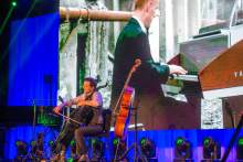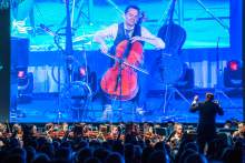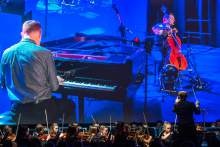 The Piano Guys, pianist Jon Schmidt, and cellist Steven Sharp Nelson, perform with American Heritage Lyceum Philharmonic during the World Congress of Families at The Grand America Hotel Friday October 30, 2015.