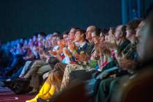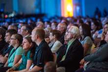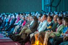 Audience members watch as the American Heritage Lyceum Philharmonic performs during the World Congress of Families at The Grand America Hotel Friday October 30, 2015.