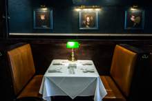 It's still big, but now the room has clearly defined zones: A lounge area with upholstered seating and a bar is in front, with the main dining room behind it, and a couple of private rooms to the east are curtained off with heavy drapery. The unifying force is a black and white tile floor, and when the lights are glowing on the cloth-covered tables, the effect is sophisticated but cozy.