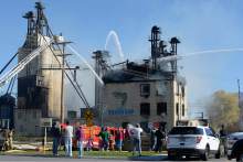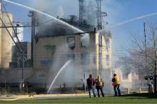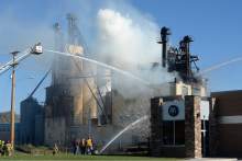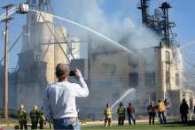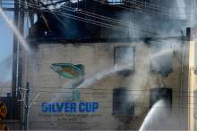 Firefighters battle a two-alarm fire at the iconic Silver Cup fish feed factory in Mur