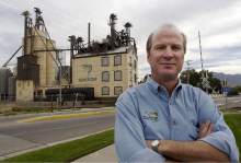 Chris Nelson is the president of Nelson & Sons which is a Murray based company the makes fish food under the label Silver Cup Fish Feed. Here he stands outside their Murray plant. Sept. 19, 2003