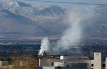As seen from Millcreek, the two-alarm fire at the iconic Silver Cup fish feed factory in Murray, Saturday, November 7, 2015.