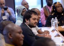 Herbert heard from successful refugees who are leaders in their respective communities, people like Newton Gborway, a Liberian refugee who has lived here for 14 years. He received his master's degree in social work from the University of Utah and works for Salt Lake County's criminal justice services. He is the coach of the Lonestar soccer team, made up of fellow Liberians.