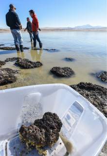 This month, Baxter hosted a gathering of scientists near Antelope Island's dry marina, a spot that hosts the most accessible bioherms. Her guests included researchers from NASA's Jet Propulsion Laboratory and Montana State University. The daylong meeting's goal was to generate research ideas for advancing knowledge and public awareness of this largely invisible resource.