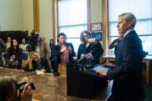 In an impromptu news conference, Biskupski congratulated the mayor for his eight years in office.