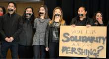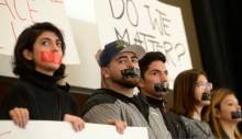 Students filled the auditorium at Olpin Union building at the University of Utah on Friday for an open discussion on the school's attempts at inclusivness and fairness to it's minority students. A handful of minority students in the crowd held a silent protest during the discussion with signs and taped mouths saying the university doesn't do enough to represent them. The protestors were welcome but most students used the time to listen and vocalize their problems with the school's lack of support programs for minority students and what it could do better.