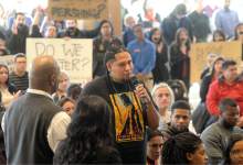 University of Utah Native American student Nathan Manuel speaks to students that filled the auditorium at Olpin Union building at the University of Utah Friday Nov. 20 for an open discussion on the school's attempts at inclusivness and fairness to it's minority students. Students and faculty used the time to listen and air their problems with the school's lack of support programs for minority students and what it could do better.