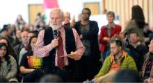 University of Utah President David Pershing speaks to students that filled the auditorium at Olpin Union building at the University of Utah Friday Nov. 20 for an open discussion on the school's attempts at inclusivness and fairness to it's minority students. Students and faculty used the time to listen and air their problems with the school's lack of support programs for minority students and what it could do better.