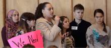 University of Utah student Kaya Tukuafu with the group Voices of Diversity speaks to student
